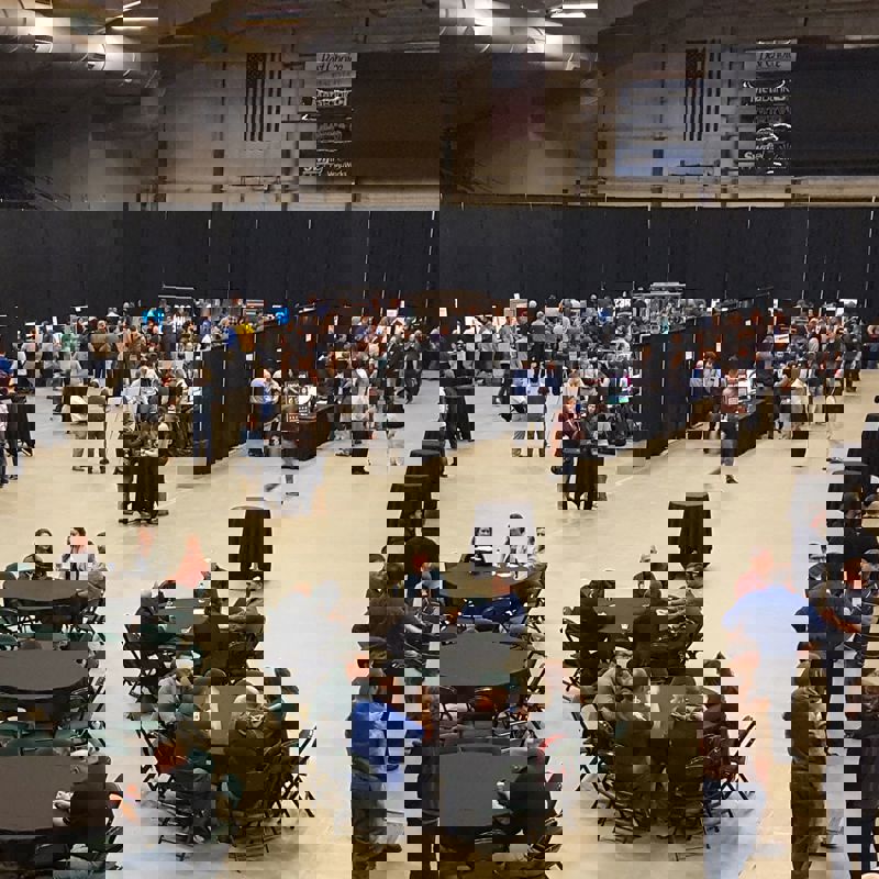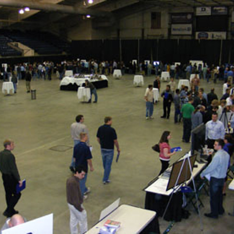 This year on President’s Day, Daktronics engineers from across the company gathered at the Swiftel Center in Brookings, South Dakota to show their groups’ recent innovations to fellow coworkers and local engineering students.