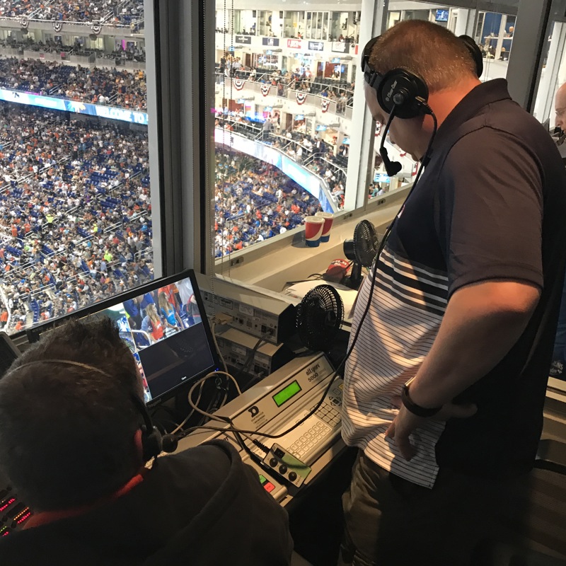 Along with the 21 LED video displays already installed in Marlins Park, we also provided a 1.9mm narrow pixel pitch display in the Miami Beach Convention Center to energize people attending MLB FanFest. One of our Service Managers and a lifelong baseball fan, Dustin Culhane (pictured below) attended the big event and was excited to be part of the festivities. “The Home Run Derby has always been a bucket list item for me, and we’re excited we can help make this event fun and entertaining for the fans.”