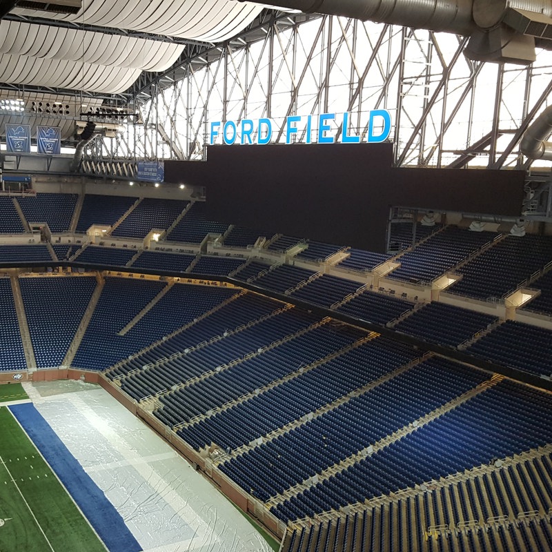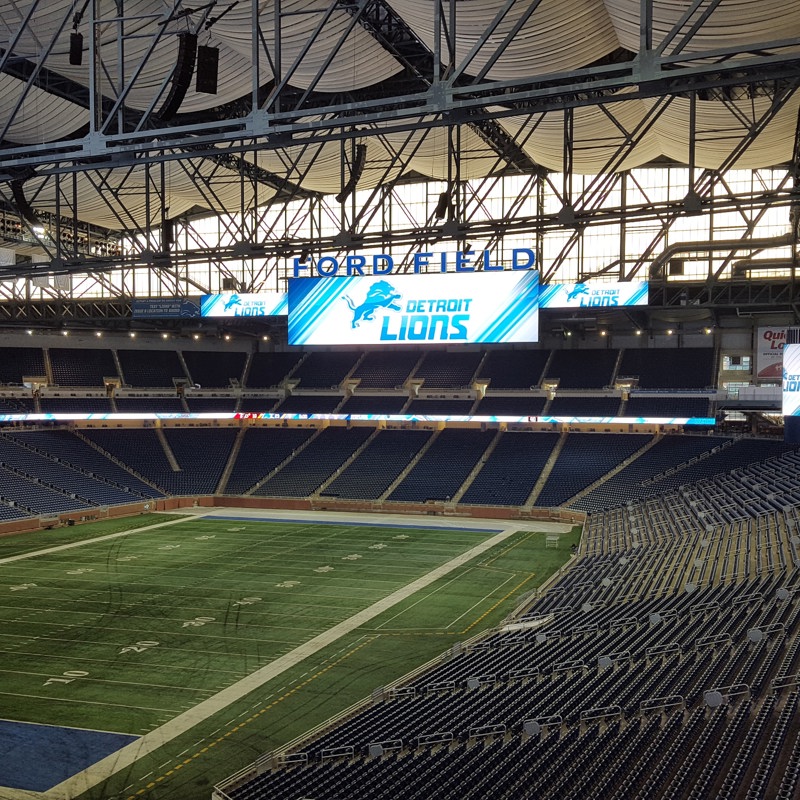 The Detroit Lions are currently making some changes to Ford Field and recently invited the media to tour the venue. Team President Rod Wood led the tour showing new LED displays inside Gate A, upgraded clubs and dining areas, and ended in a suite on the 50-yard line as the new end zone, super column and ribbon displays were turned on for an audience for the first time.