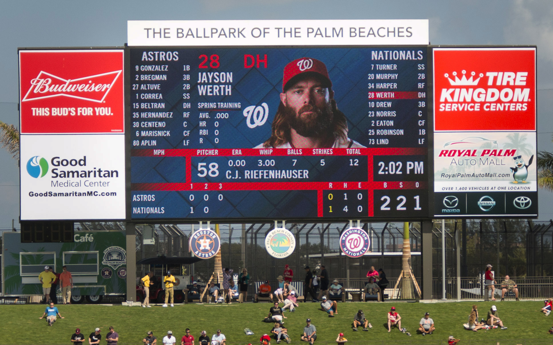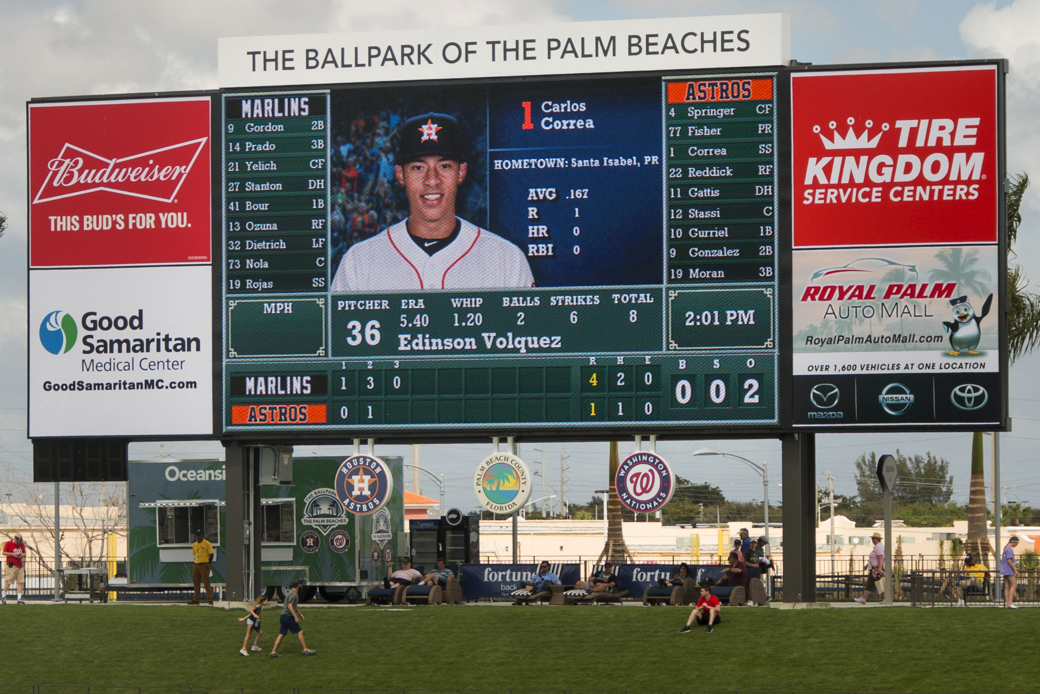 The weather is getting warmer; the grass is growing greener and pitchers and catchers have reported; spring training is under way! The new state-of-the-art Ballpark of the Palm Beaches in West Palm Beach, Florida welcomed players and fans for both the Houston Astros and Washington Nationals, along with a new 25’x44’ Daktronics video display in right field. While the teams are getting prepared for the season on the practice fields, the production team is getting prepared for the season in the control room. But, how do you prepare to host two different Major League teams in one venue? And while balancing the amount of time it takes to prepare for a season, how do you ensure you are still providing engaging content for your fans? With a little extra work on the front end, the team at Ballpark of the Palm Beaches has done just that.