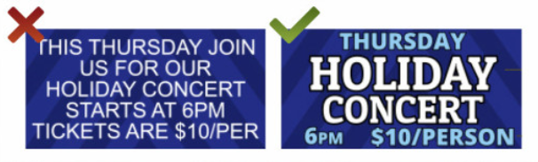 Next, preview your created message. Here’s a tip! Try to read the message at least 5 times before the layout changes. If reading it 5 times was a stretch, you need to trim it down. Remember, your audience is in motion. Give them every opportunity to engage with your message (and your business.) It’s more than okay to rethink your traditional advertising. Isolate an idea, keep the key points and remove extra wording.