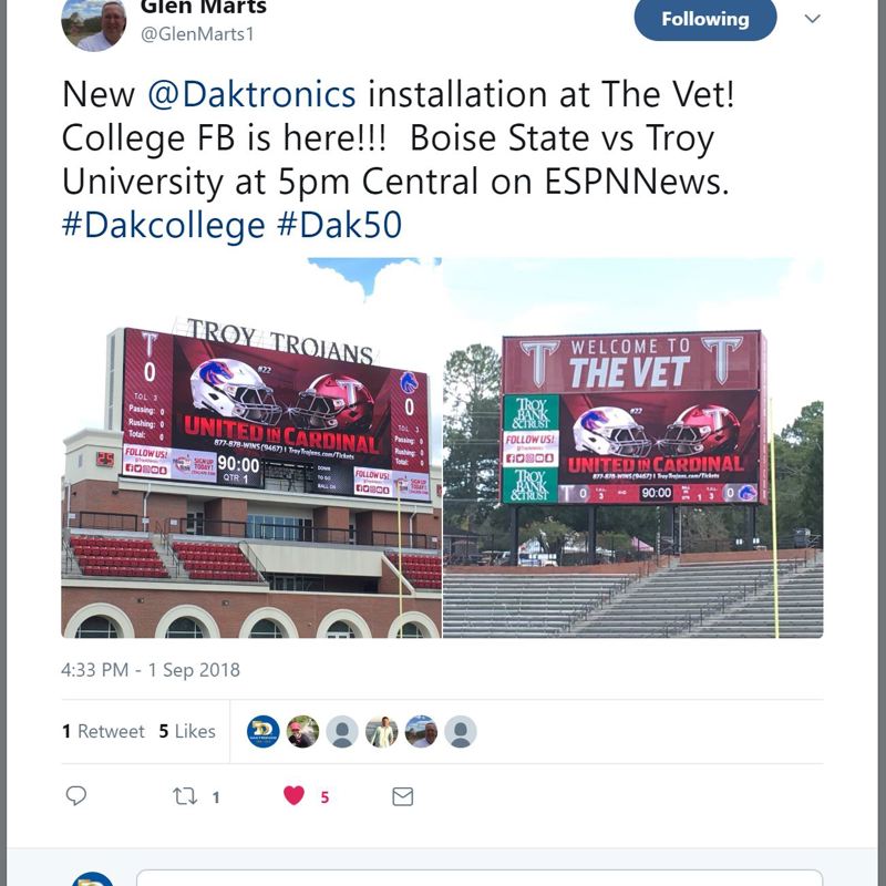 If you have any pictures or see any tweets out there that we missed, please email them to me at Matt.Anderson@daktronics.com and we’ll get them included right away. We always love seeing our products in action and seeing the effects they have on our customers’ fan base.