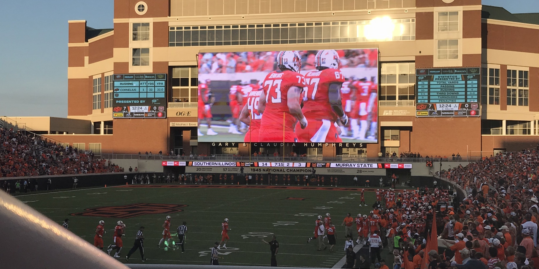 Daktronics has been working with customers all spring and summer this past year ensuring that any new equipment is up and running for the start of the season from large video boards down to new delay of game clocks. It can be difficult keeping track of all the new equipment we’ve installed this year, but as far as video displays go, we’ve installed displays for 34 different colleges and universities, totaling more than 70 displays for 63,085 square feet of LED video.