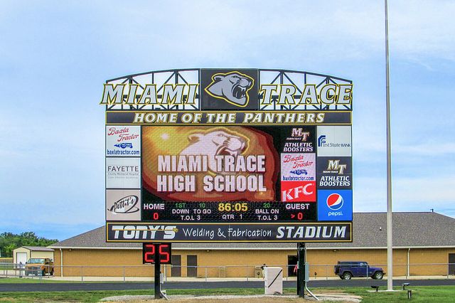 Miami Trace High School in Washington Court House, Ohio, installed a video display in their new stadium for the quickly growing student body population.