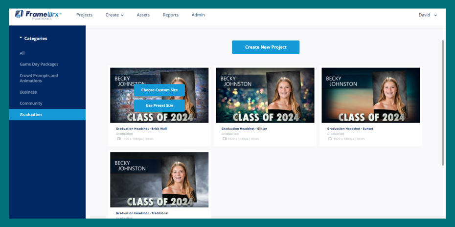 Planning a graduation showcase? Save time and effort with FrameWrx! FrameWrx is a subscription-based service that offers easy content creation through customizable templates. Simply choose a template, replace the imagery and text, and voila! You’ll have professional-looking content ready in minutes.