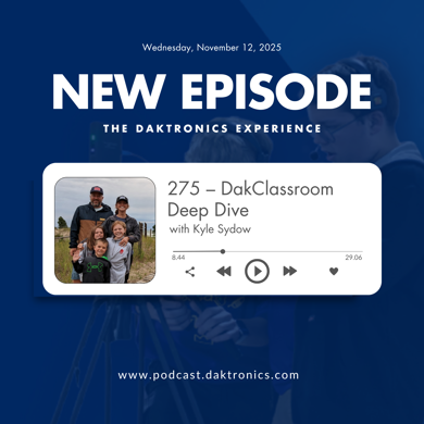 Check out the complete episode of The Daktronics Experience Podcast featuring Kyle Sydow, where we take a deeper dive into how DakClassroom is connecting education, technology, and opportunity for students nationwide. Listen on your favorite podcast platform or at Daktronics.com/Podcast.