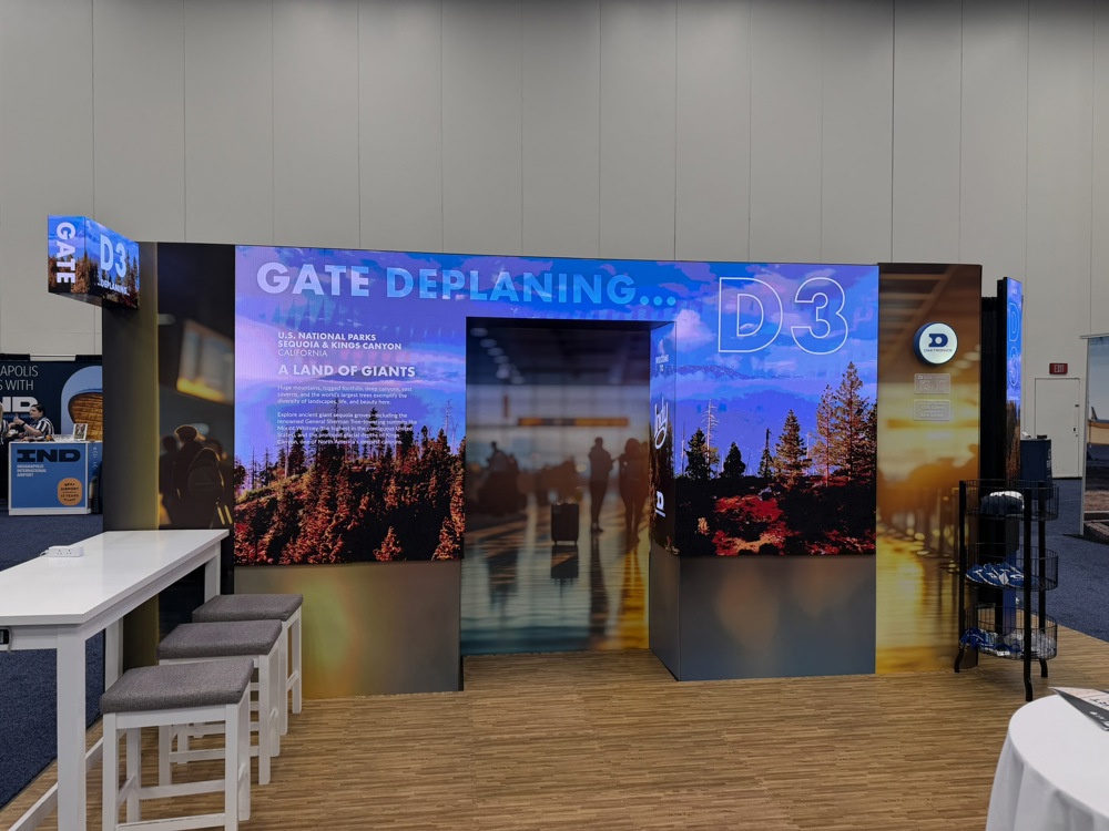- Immersive checkpoint or queuing areas that reduce traveler stress through calming visuals and AI‑supported instructional content.