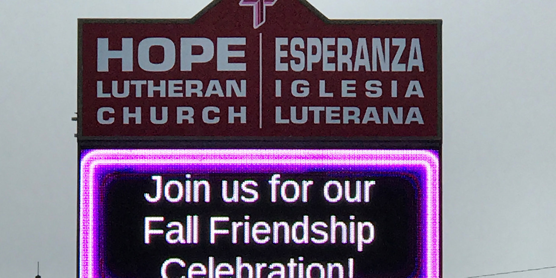 You could say Hope Lutheran Church stepped out in faith. After noticing an increase in the Hispanic population in the city, the church wanted to reach out in a more noticeable way. A functional, but dated, static lettered sign served as the church’s communication method to the public. After consideration, the church, led by Pastor Michael Awe, decided to move forward by purchasing a digital display to spread their message.