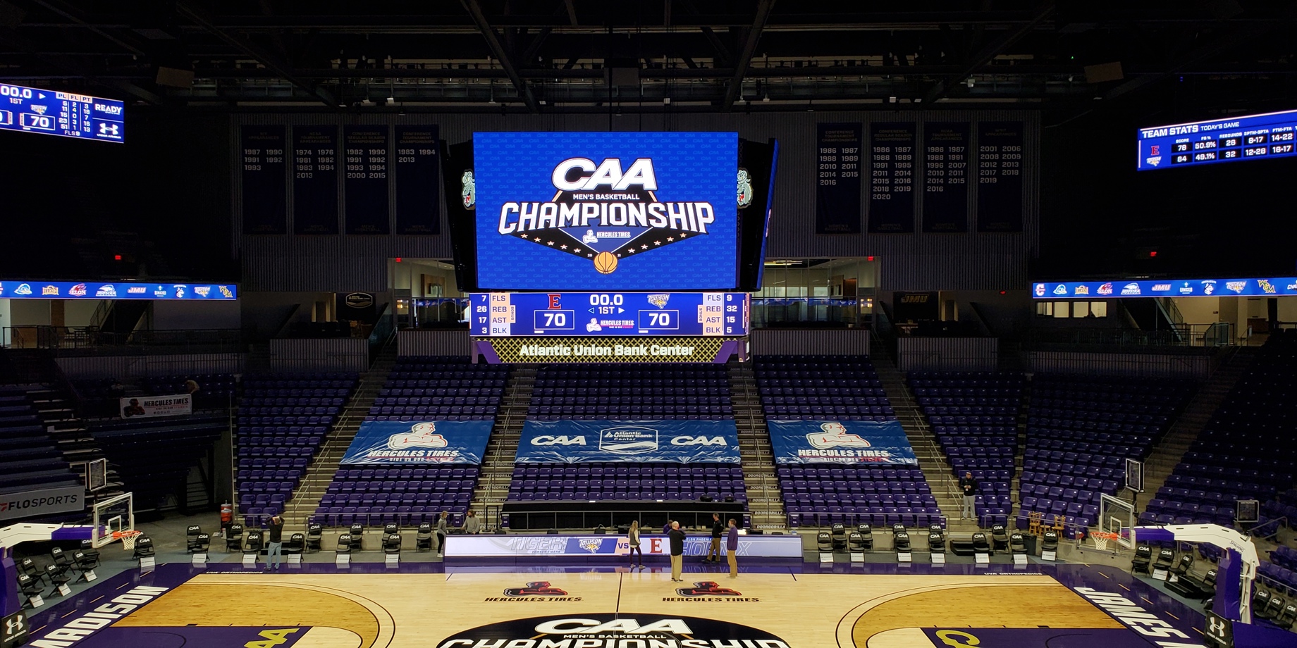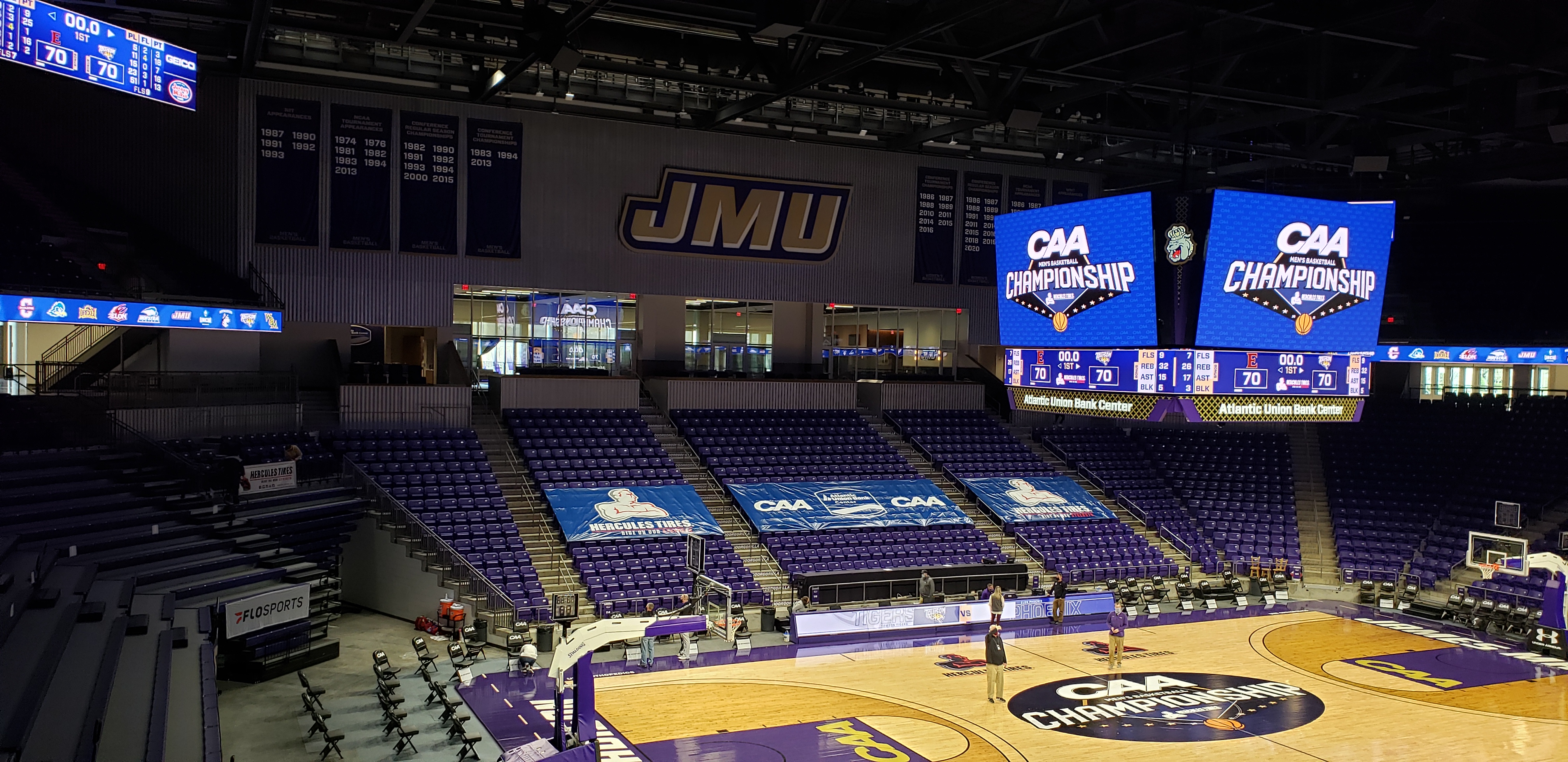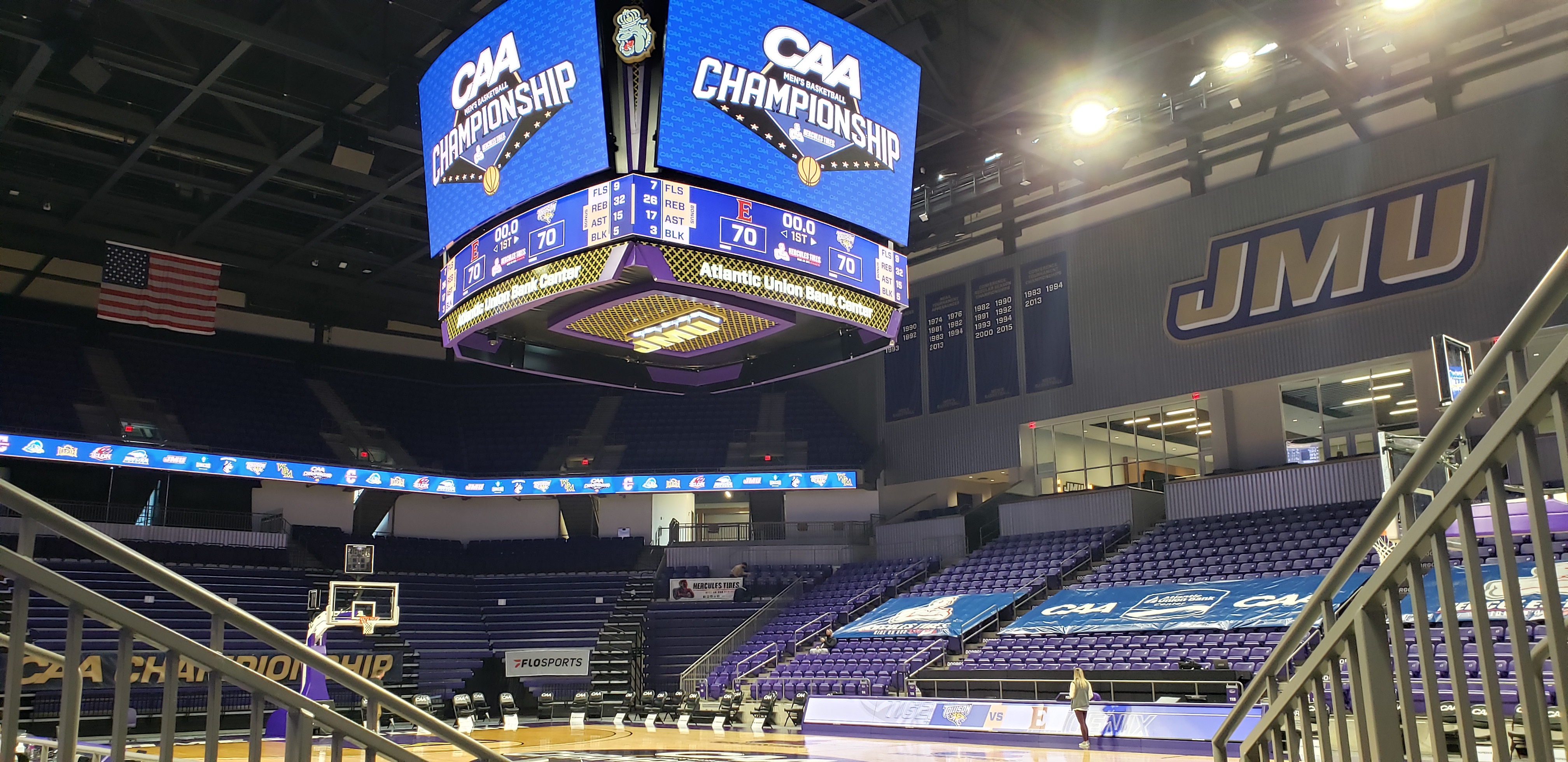 A conversation about hosting and event production for the CAA college men’s basketball tournament at James Madison University with Daktronics video displays.