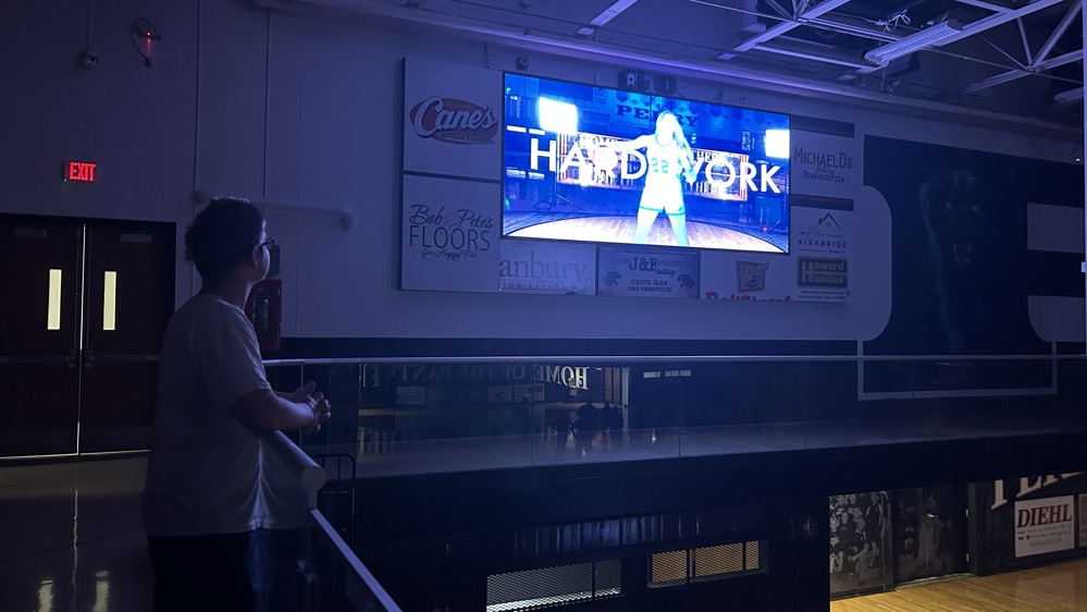 Students are also getting hands-on experience, creating hype videos and graphics that play on the big boards, giving them real-world skills and pride in their work.
