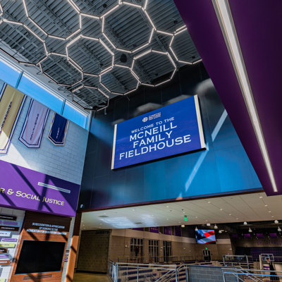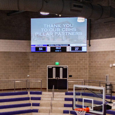 Being the only school in the Memphis area with high-quality indoor video displays, the school has lots of real estate for digital content. These screens allow them to give sponsors more screen time, welcome spectators to games, enhance the environment for prospective students, and build a dynamic gameday environment.