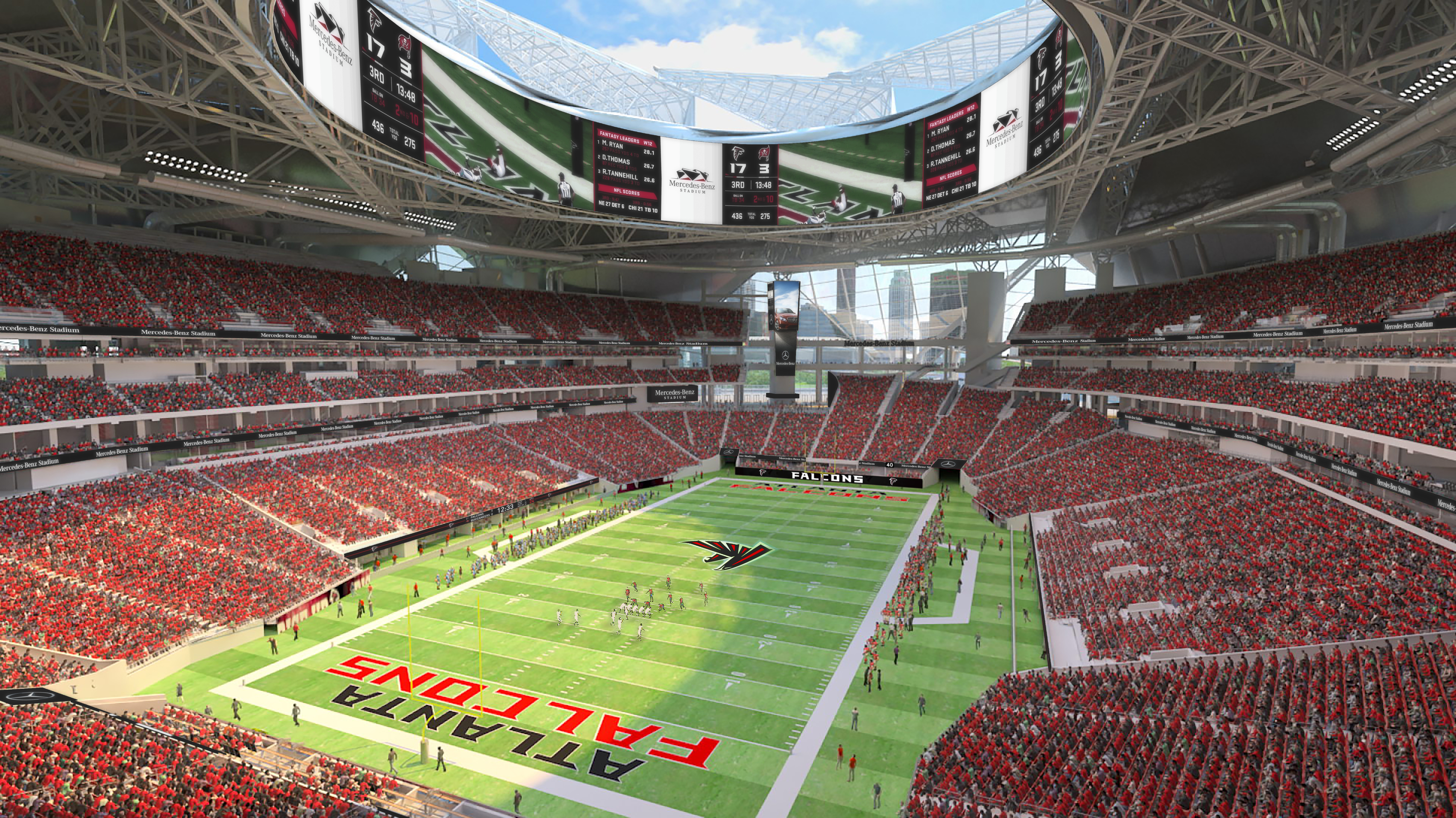 Together, the displays will provide a digital canvas for fans to stay connected with a viewing experience and great sightlines to the action throughout the stadium. With over 83,500 total square feet of LED from Daktronics, Mercedes-Benz Stadium will offer more LED real estate than any other stadium in the world to display all the engaging and entertaining content fans crave, from live video, replays, crowd prompts, in-game stats, fantasy stats, out-of-town scores, social media, and so much more.