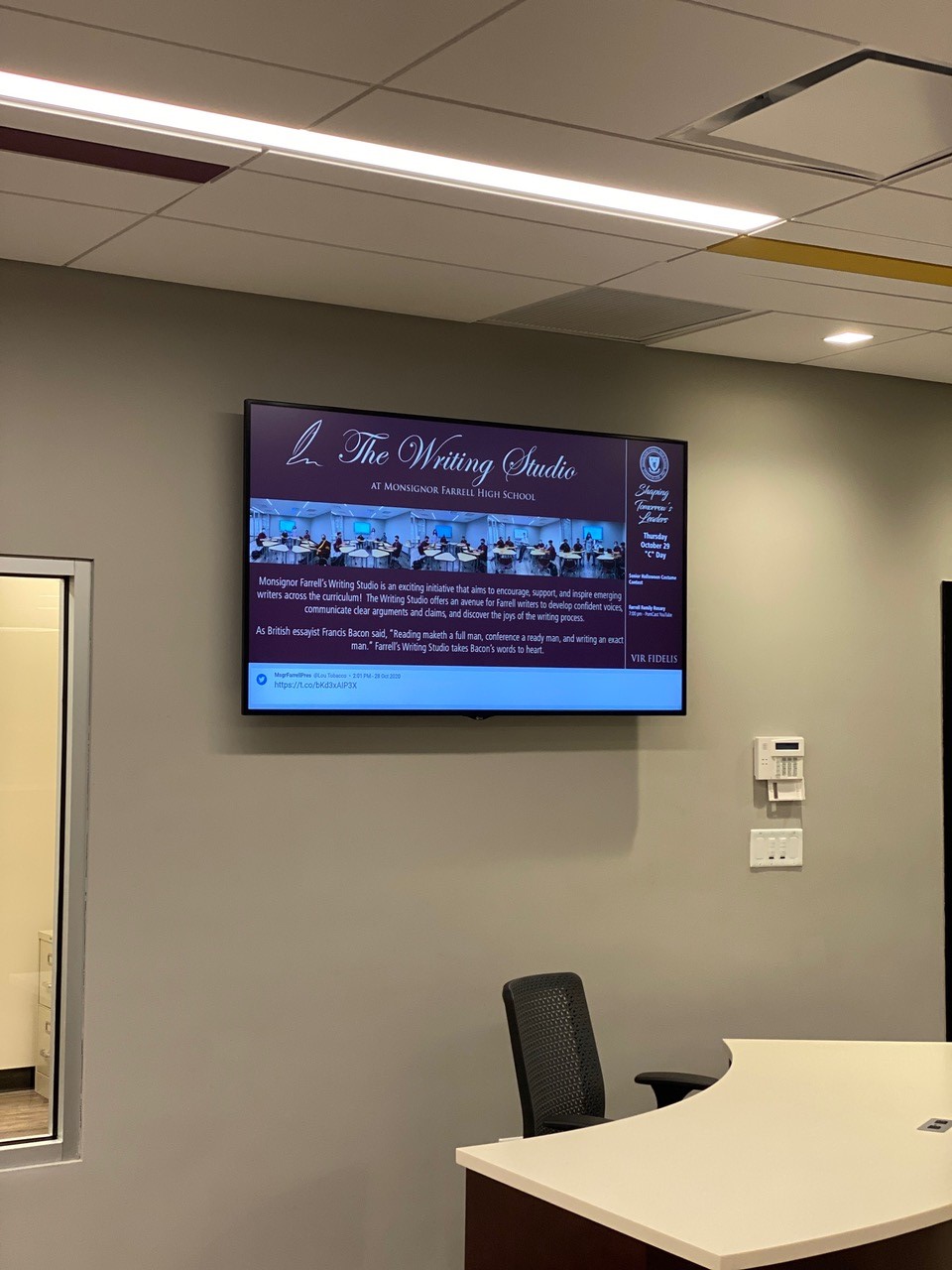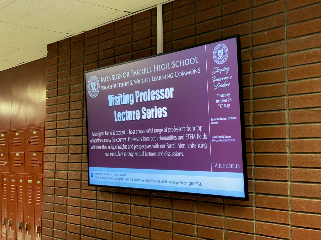 Monsignor Farrell High School uses eight digital signs to help faculty and students stay up to date, while adding a little excitement every day.