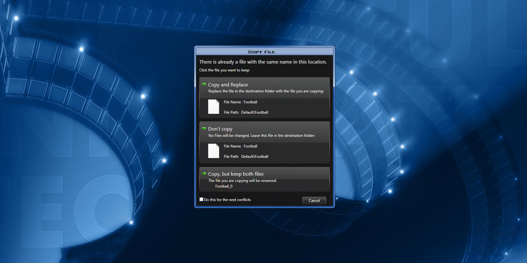 - Choose an existing folder or create a new folder where the content should be saved. If the file(s) already exist, choose Copy and Replace.