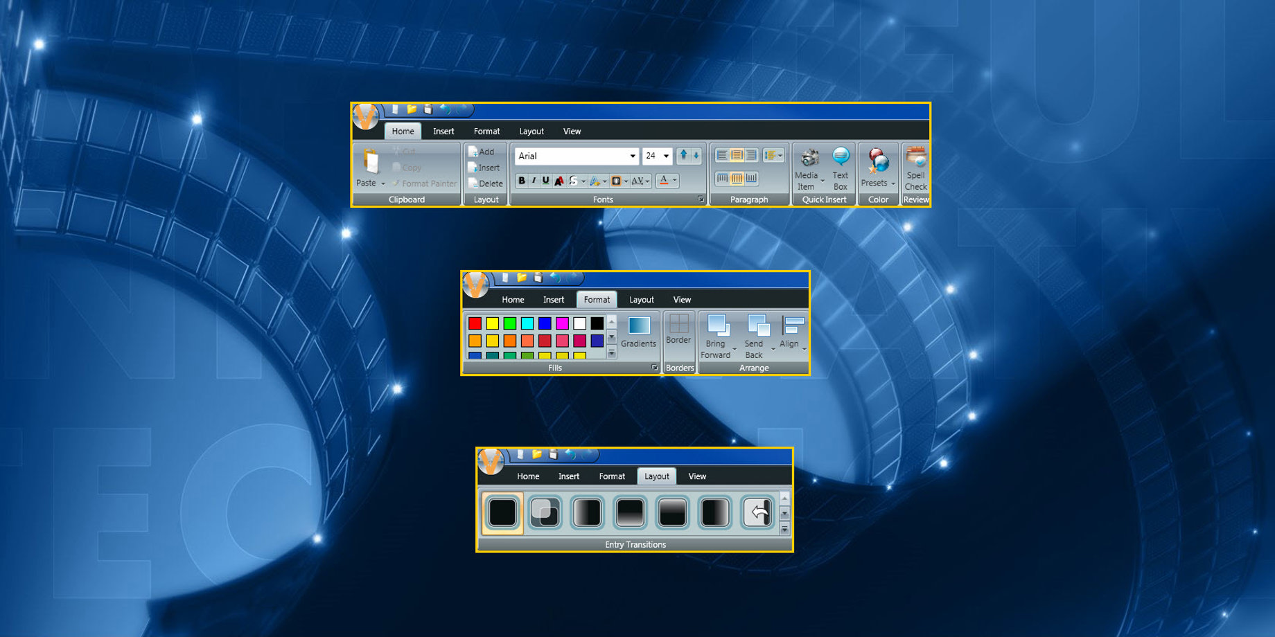 Gradients allow you to add multiple colors to your background to make them more visually appealing. You can add gradients to your messages very easily. Simply click on the Gradients button in the Format Tab, choose the orientation of your gradient, and then pick which color(s) you would like to use. You can also click on the ‘More’ button right below the Gradients button for even more custom options!