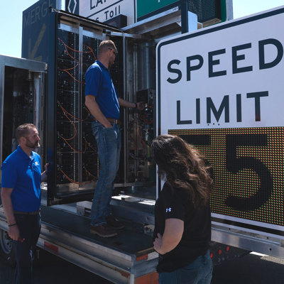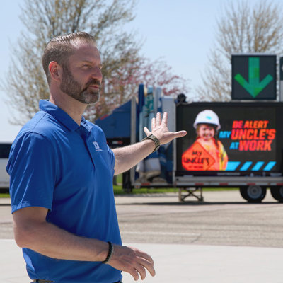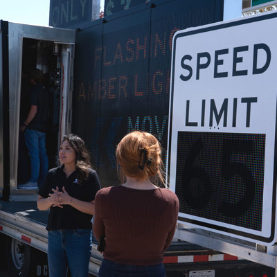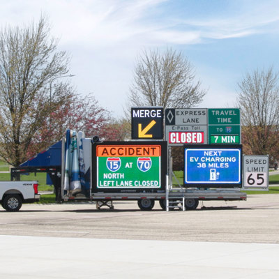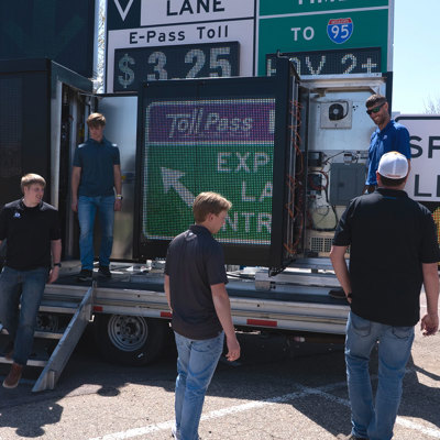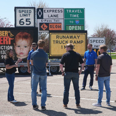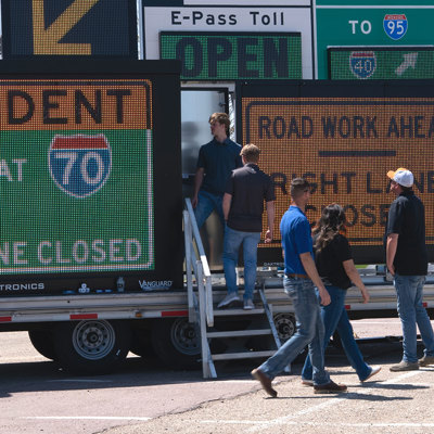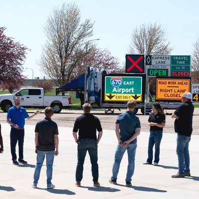 The Daktronics Roadshow brings the latest in transportation display technology directly to you. Our mobile demonstration trailer is equipped with cutting-edge dynamic message signs, offering a powerful, hands-on experience that allows you to see, touch, and interact with our LED technology in real time.