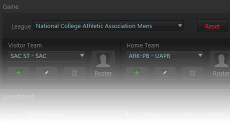 The SportApps support rosters via manual input or imports from excel and CSV roster files, including ESPN3 file formats. Roster information, including headshots, can be utilized by a wide variety of graphics. Through Player Drive Data, the roster information can allow operators to quickly and easily build player-specific insert graphics that grab team and player information automatically upon player selection.