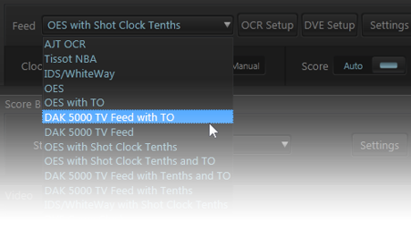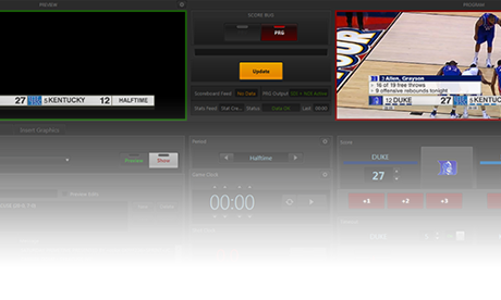 If no scoreboard controller is available, the SportApp DVE clock feature can overlay the Game Clock and Shot/Play Clock onto the scorebug, allowing it to animate in and out with your graphics.