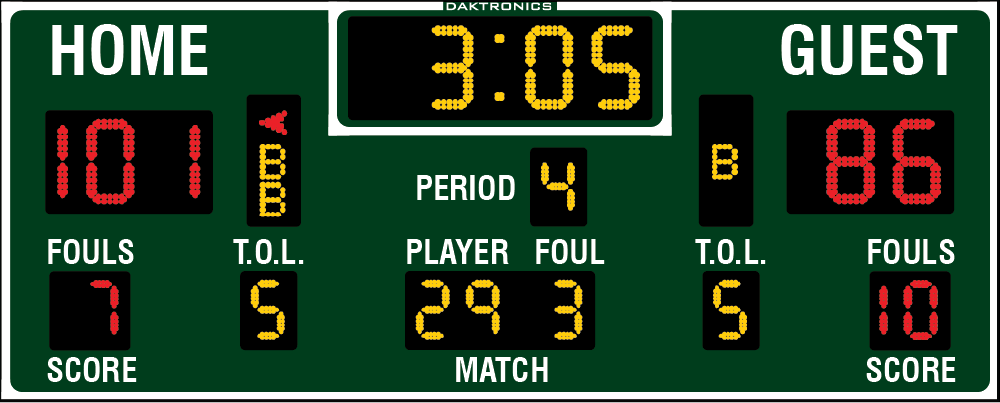 bonus. Scoreboard can also score volleyball and wrestling. When period time is less than one minute, the scoreboard displays time to 1/10 of a second.