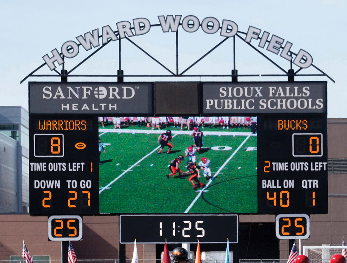 This flexible scoring solution allows you to use one scoreboard for multiple sports or events on a shared field.