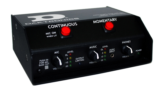 The Sportsound Announcer’s Mixer is a standalone two channel mixer designed to combine line and microphone input sources into a single output directly to an audio system or a sub mixing console. This system provides a single-point location to control voice announcements and play music files from an MP3 player, laptop or smart phone.