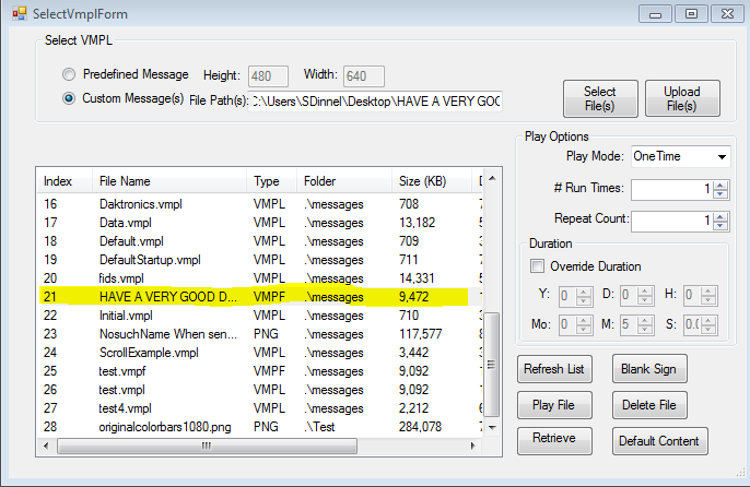- There will be no indication through the app that the file is playing, so it will have to be verified visually on the display.