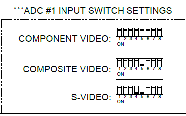 - If using S-Video, make sure the converter is set to S-Video. (Switch #4 and #5 are On, the rest off)