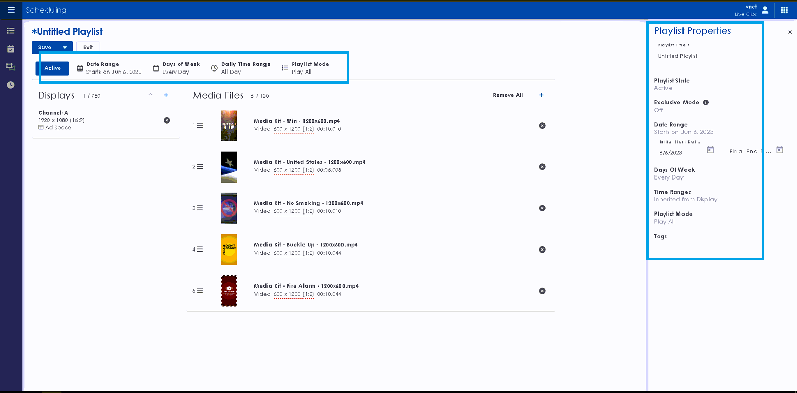 Scheduled content for up to 10 displays- advanced view