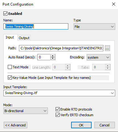 - Setup the input ports to read the .txt or .xml files for diving and synchro standings and the output ports for open ports on your network.