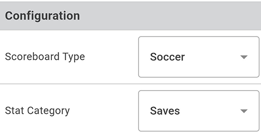 - Under Stat Category, select which stat to show on the scoreboard: Corner Kicks, Saves, or Fouls. Note that standard soccer scoreboards do not include vinyl Fouls captions.