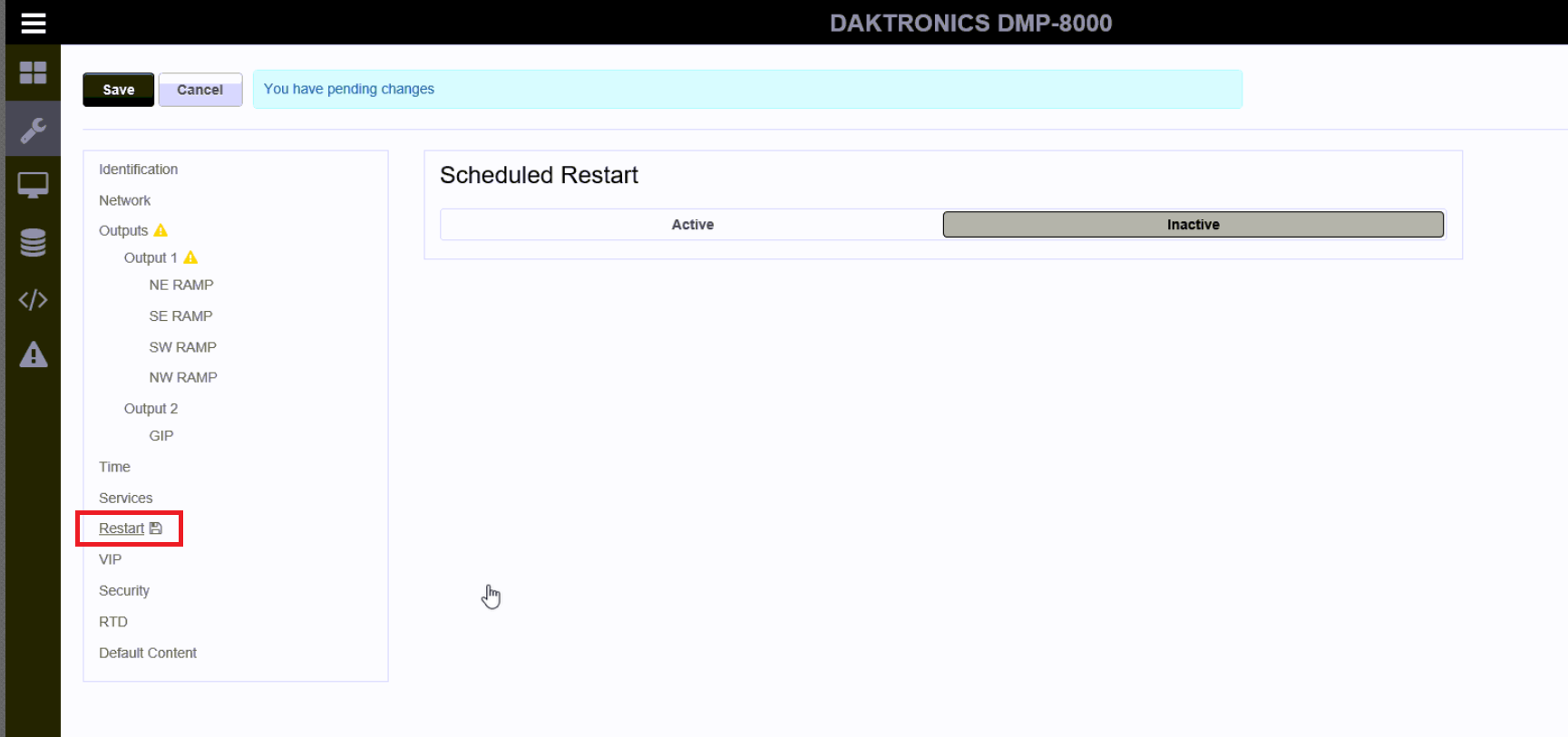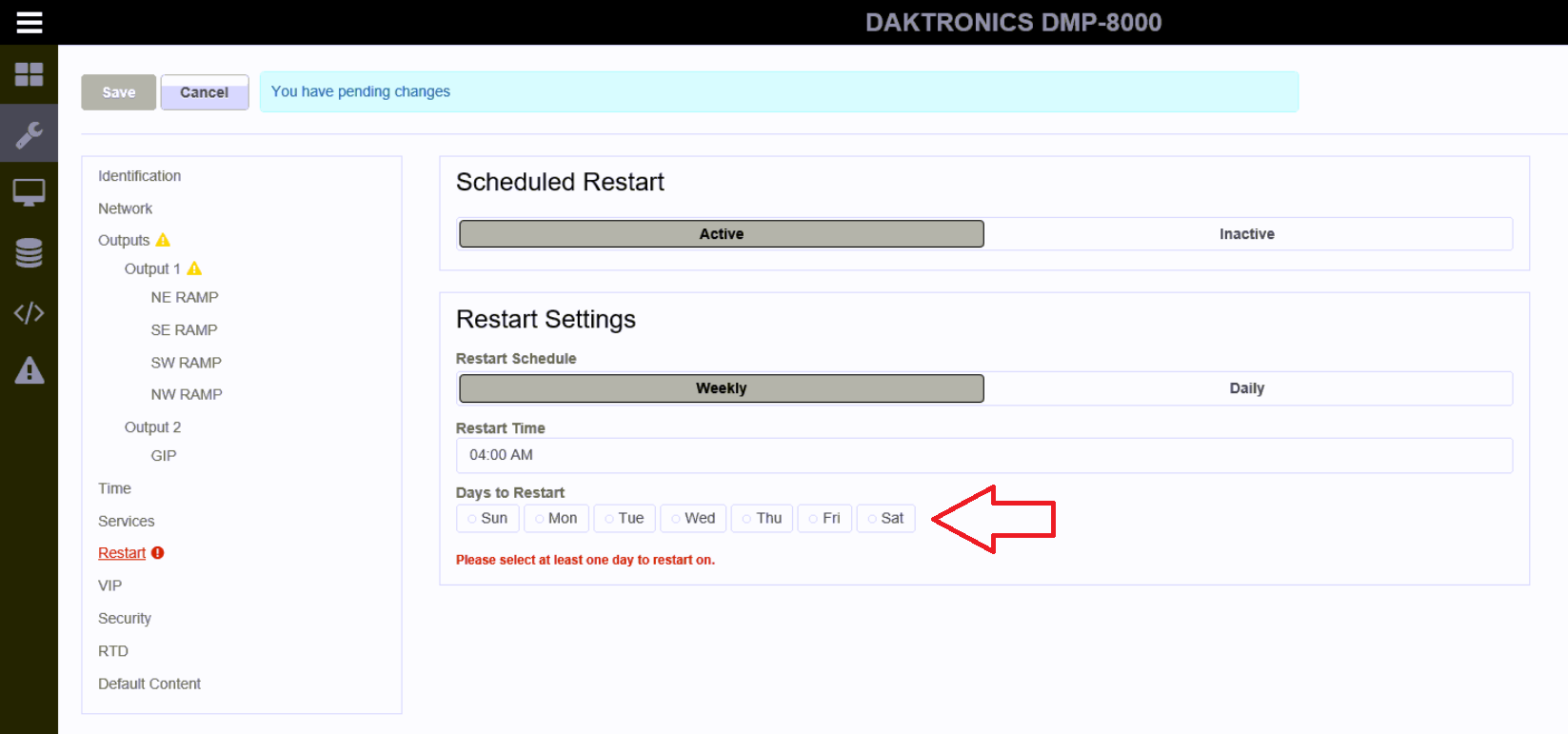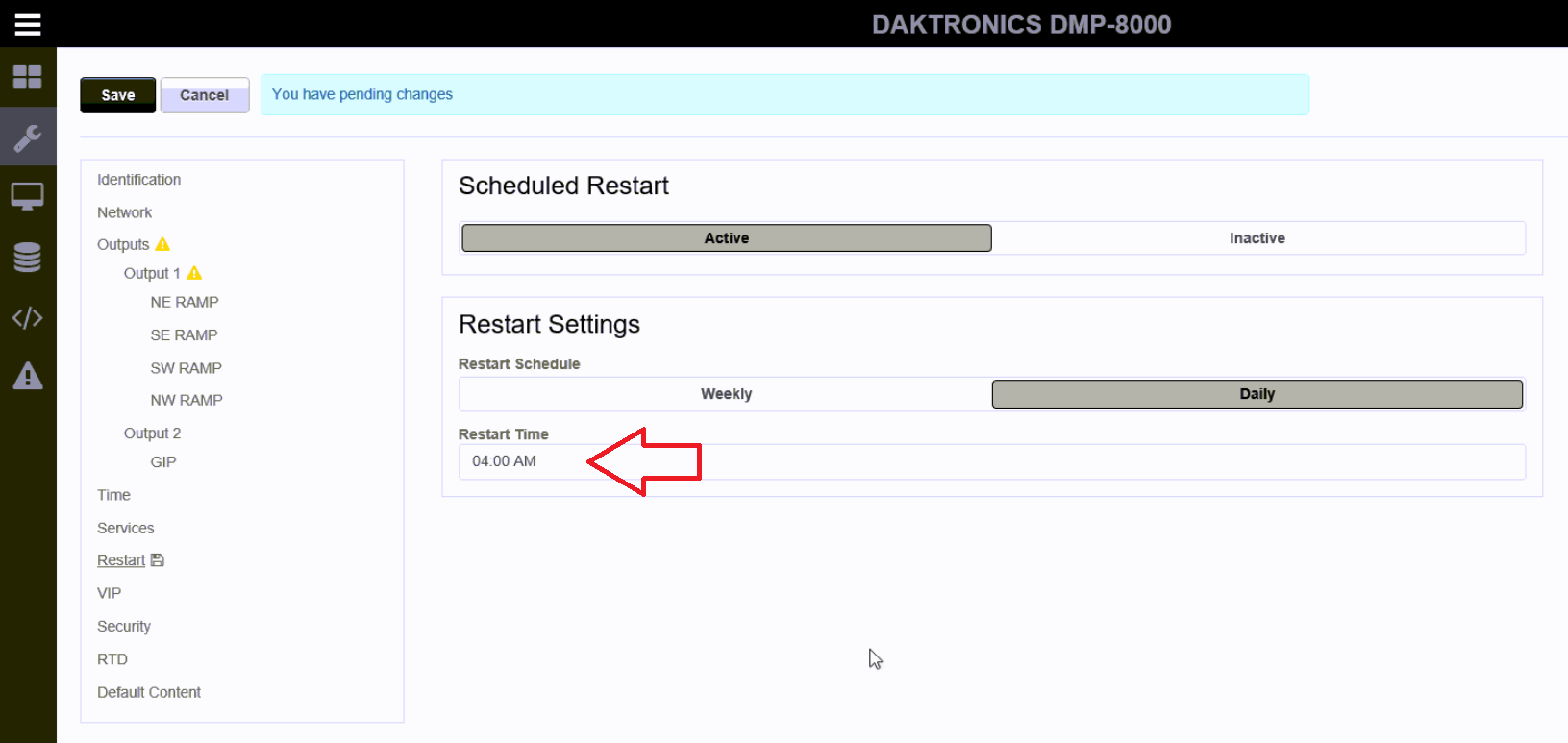 - Daily - enter in the Restart Time you want the DMP-8000 to reboot daily