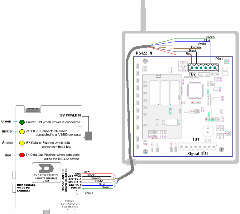 • Connect RX to TX(pins 5 and 6) on TB1 signal out.
