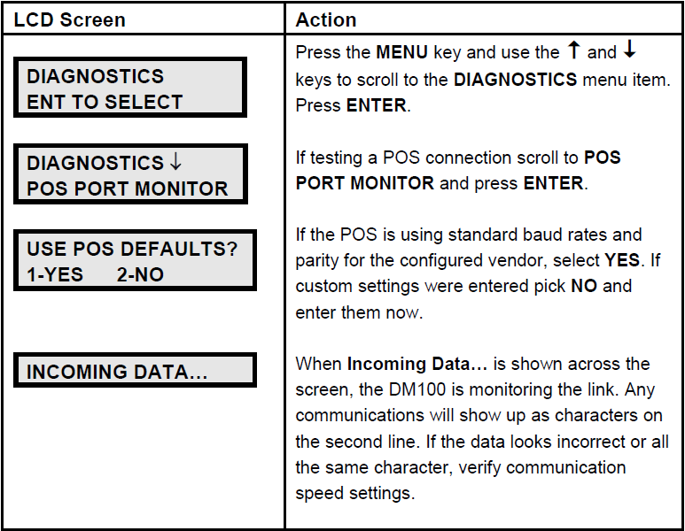 Perform DM-100 port monitoring of a point of sale system.