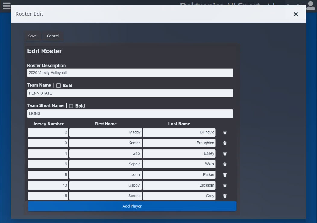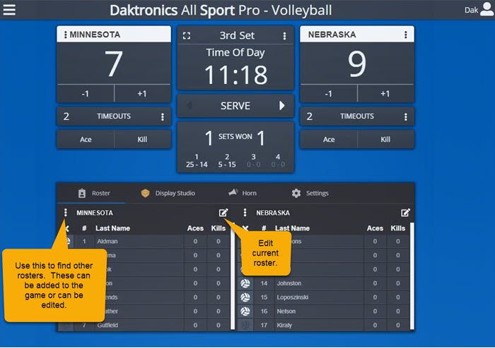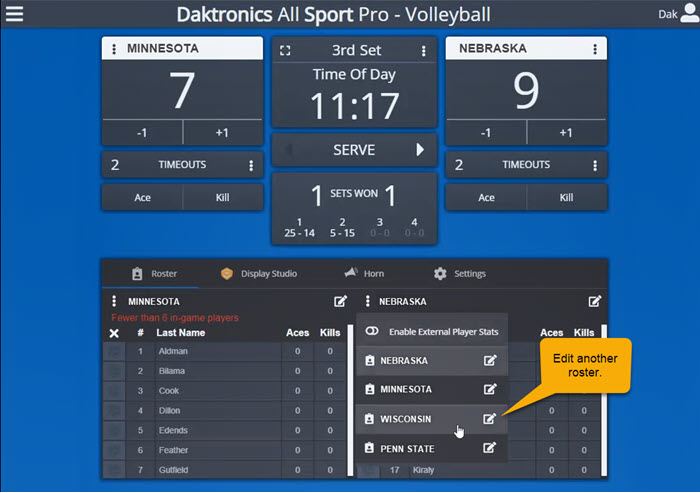 All Sport Pro: Can I edit another existing roster during my volleyball game?