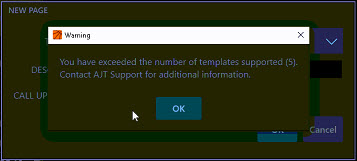 - Message prompt "You have exceeded the number of templates supported (5). Contact AJT Support for additonal information.