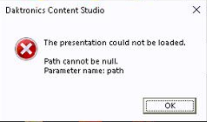 - When opening content in Content Studio, error message "The presentation could not be loaded. Path cannot be null. Parameter name: path.