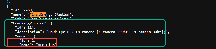 - If you look for a trackingVersion object, you will see an owner field, which either says MLB Club, MLB, or Hybrid. For Daktronics purposes, MLB and Hybrid are both MLB-owned and fall under MLB's credentials. MLB Club would have different credentials by venue.