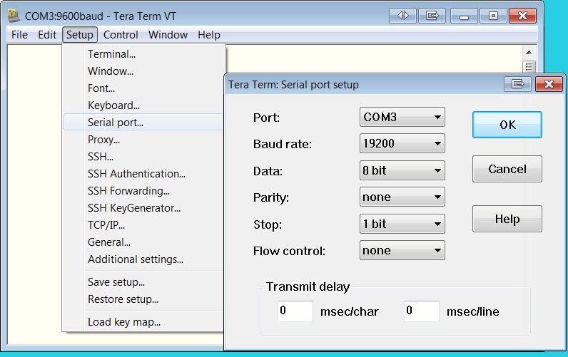 - With the loopback in place, type some characters into to Tera Term and see if you can see what you type; if you can, the loopback is passing (good signal up to that point)