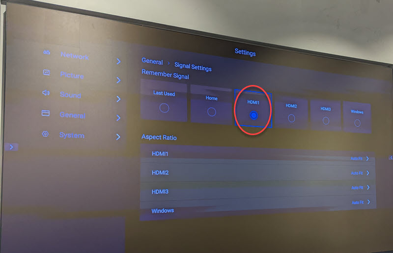 3. Under "Remember Settings", select the HDMI input which the DMP is connect to.
