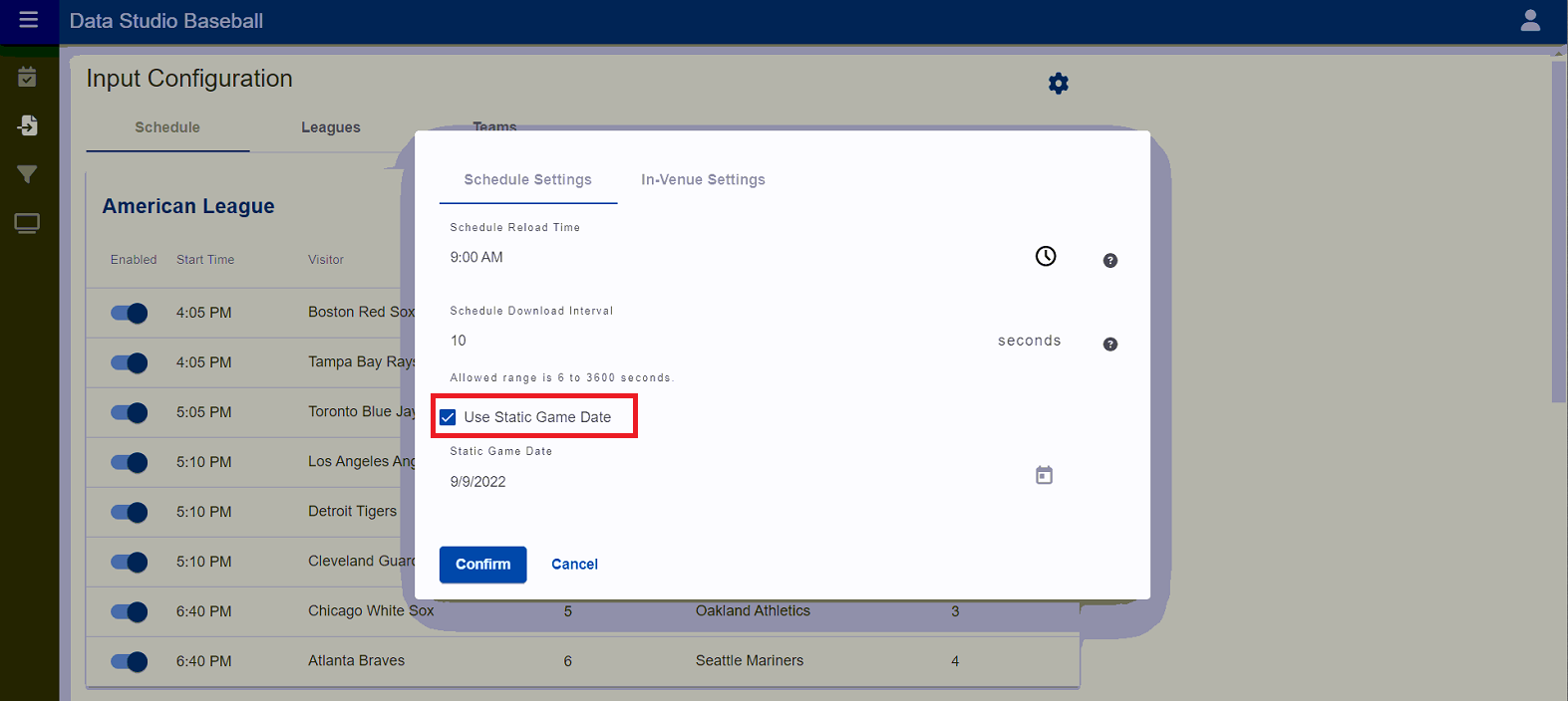 - Under Schedule Settings, check Use Static Game Data.