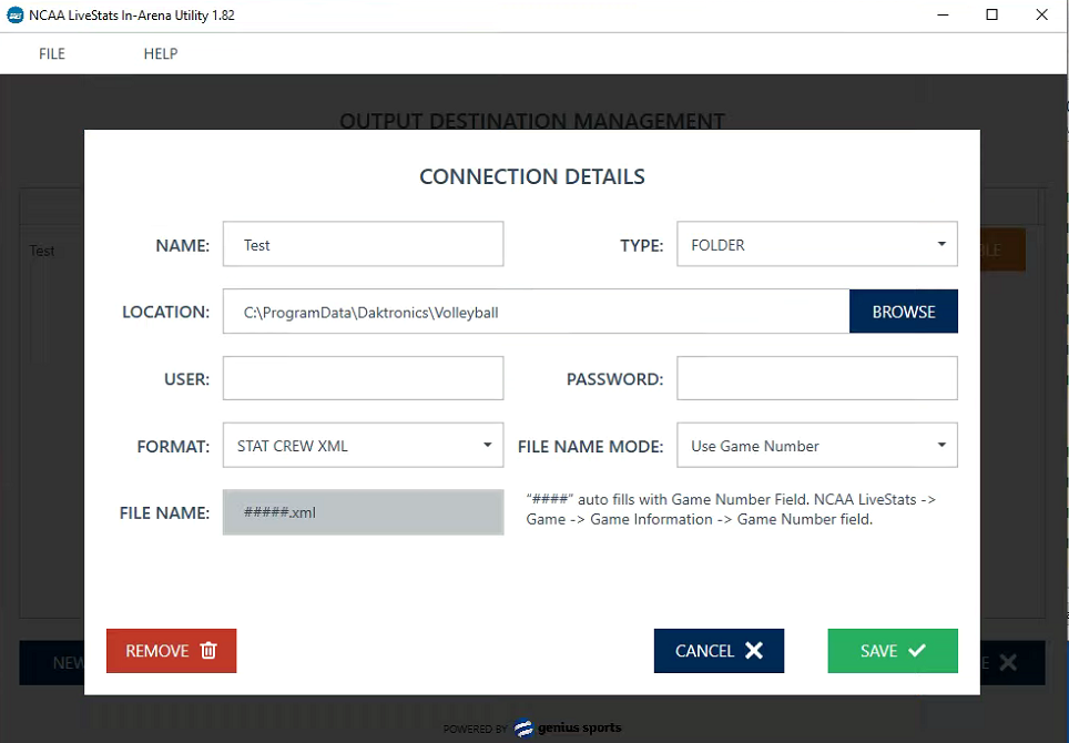 Currently Daktronics integrates to the XML output from Genius or Presto Live Stats. It is the responsibility of the customer to provide a way to deliver the file from their stats computer to the Daktronics machine (DSTI or Venus-P).