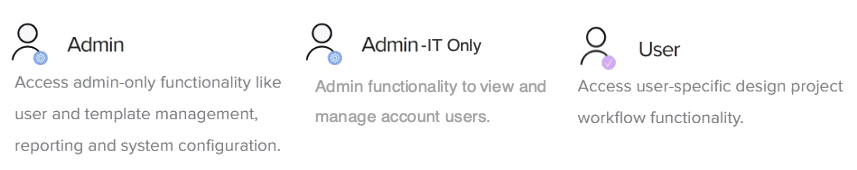 FrameWrx has two primary user types: Admins (including IT Admins) and Users (such as students or designers). Each role has different permissions and is managed through separate workflows depending on the role type.