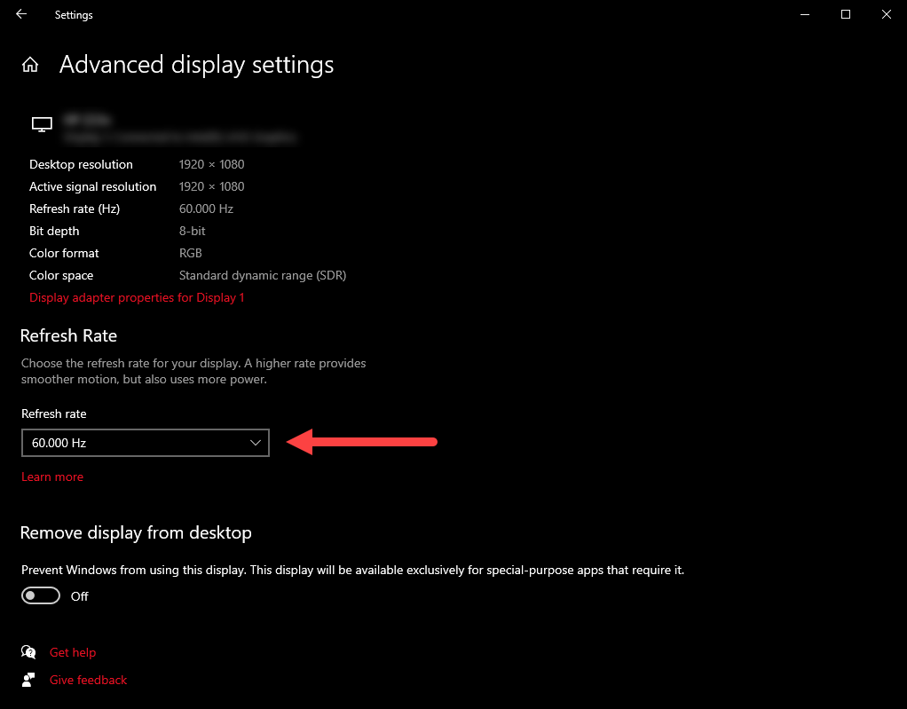 - If using a Windows laptop as a source, the refresh rate options are located in the Display Settings > Advanced Display Settings.