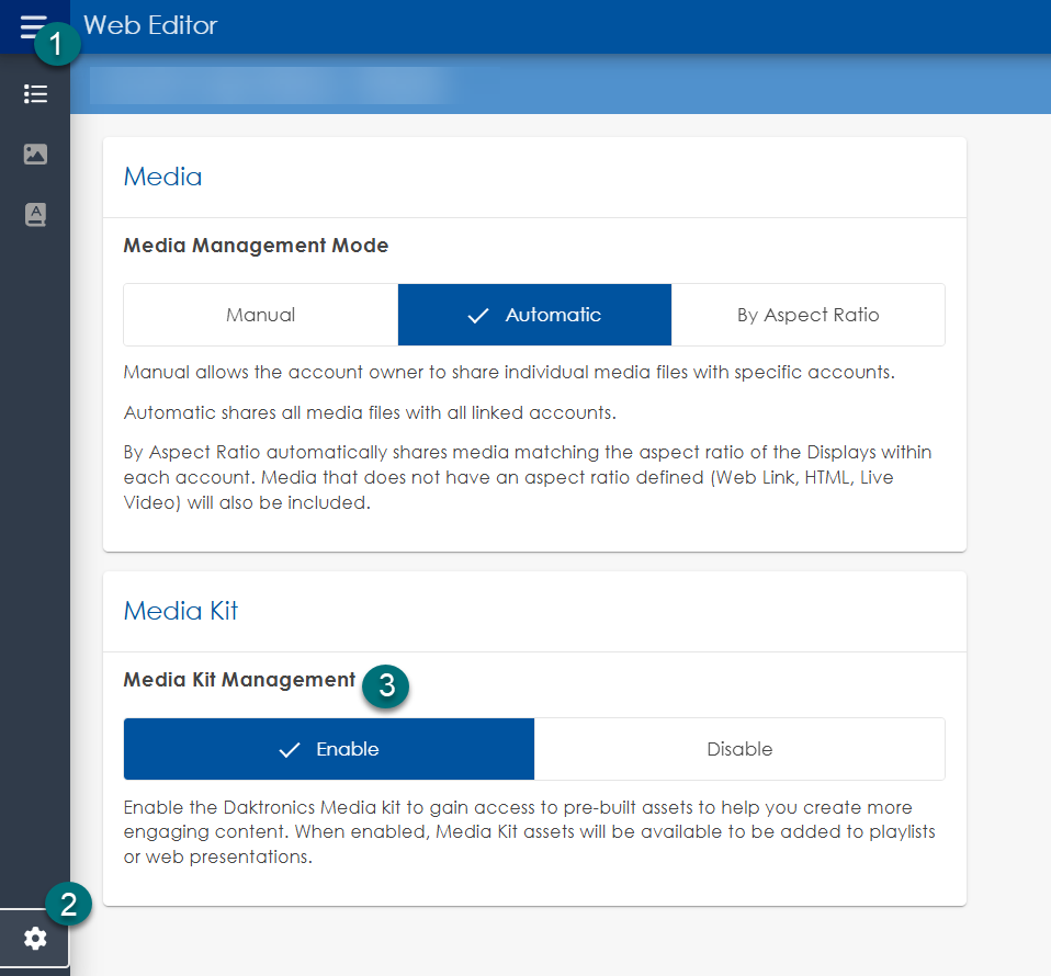 - Under Media Kit Management, choose Enable.