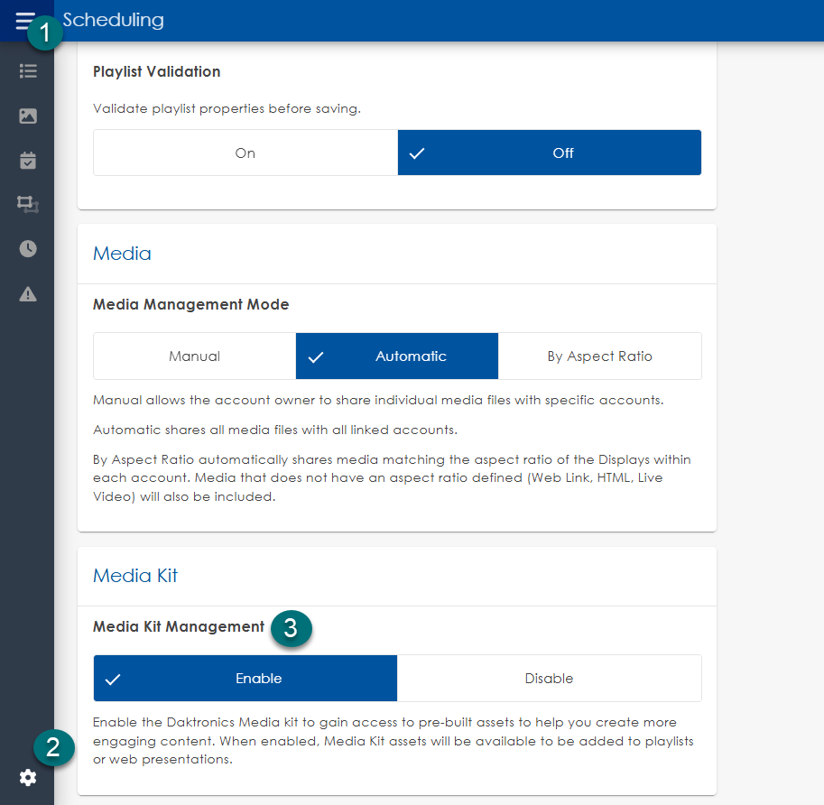 There are 2 locations to enable the Daktronics Media Kit.