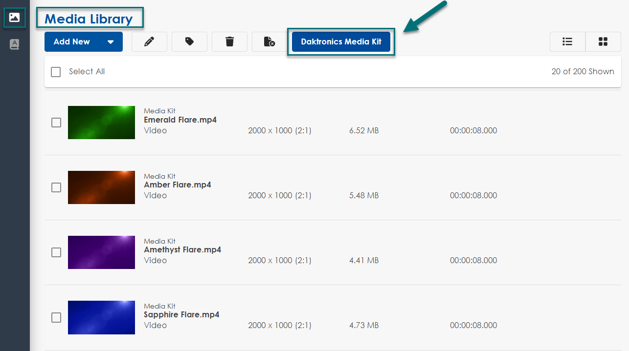 To switch to the Media Kit view, select the Daktronics Media Kit button.