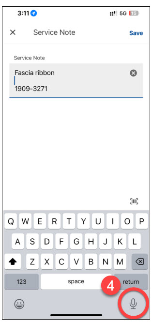 4. Type your notes using the keyboard or tap the microphone icon at the bottom of the screen to initiate the speak-to-text feature.