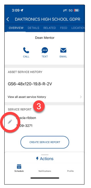 3. Tap on the pencil icon to open a Service Note.