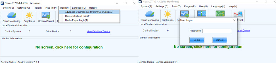 1. Go to User > Advanced Synchronous System User Login. Enter the password and click Login.