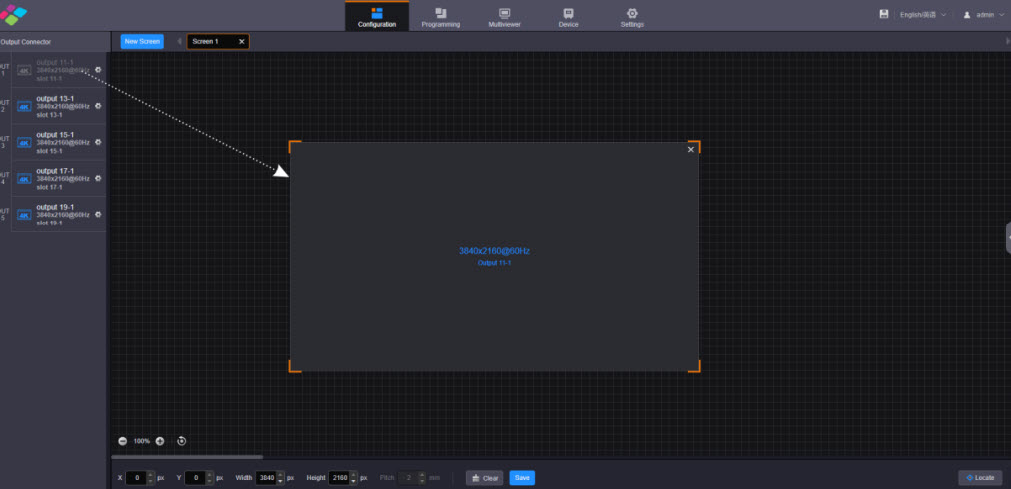 Configure the screen based on the structure and data flow of the screen loaded by the current device. Associating the screen with the outputs will make it convenient for you to control the screen by area.